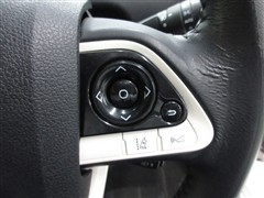 合皮巻きステアリングは顔料塗料で夏季の熱さを抑えました。安全運転に役立つステアリングスイッチ付。