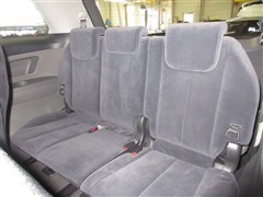 床下に簡単に収納できるサードシート。リクライニング可能で座面の厚さもたっぷり、高級ミニバンらしい乗り心地とゆとりです。