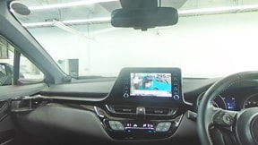 複数のカメラの映像を合成して、クルマの真上から見ているような映像をドライバーに提供する機能。