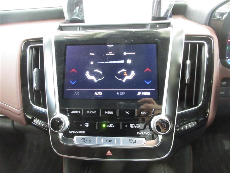 タッチパネル式のエアコンパネルは左右独立温度コントロールフルオートエアコンです。