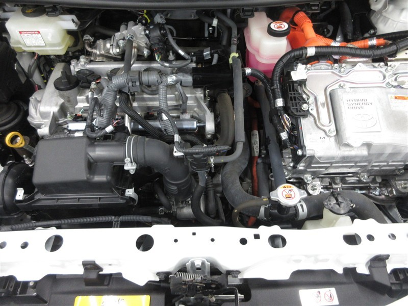 1.5リットル.アトキンソンサイクルエンジン+モーターのハイブリッドシステム。アトキンソンサイクルは、排気量を理論上可変し燃費を改善します。