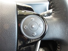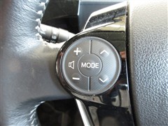 ステアリングは手になじむ本革巻き。ステアリングスイッチでオーディオの調節・マルチインフォディスプレイの切り替えができます