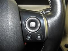ステアリングは手になじむ本革巻き。ステアリングスイッチが付いて、手を離さず安全に各種調節ができます。