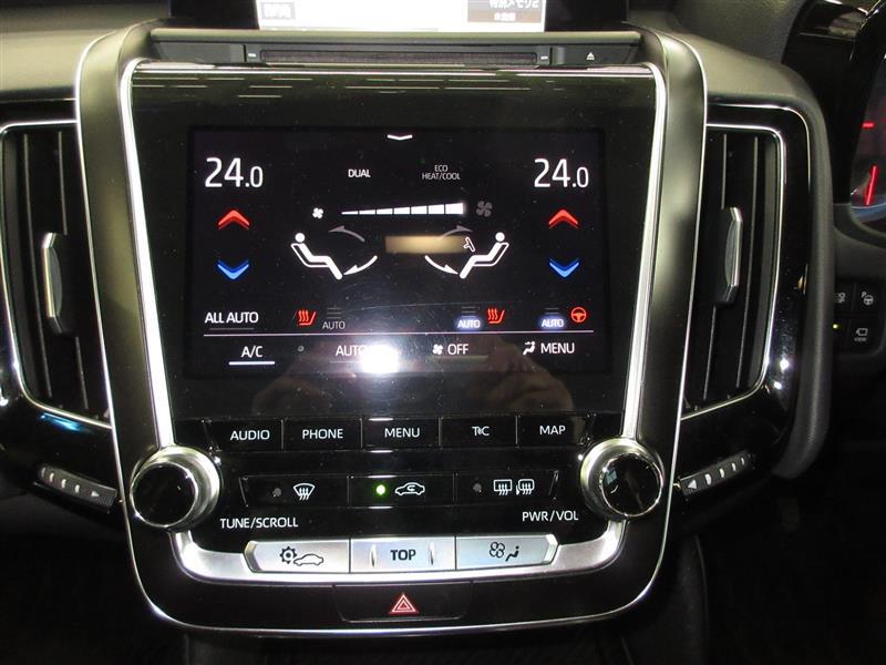 タッチパネル式のエアコンパネルは左右独立温度コントロールフルオートエアコンです。