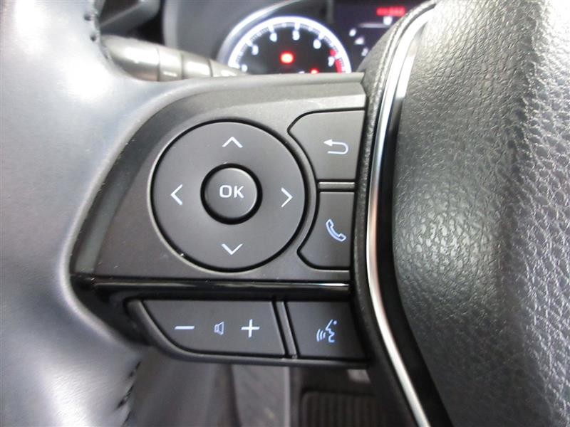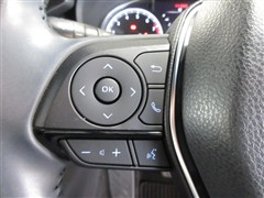 本革巻き+サテンメッキ加飾付3本スポークステアリング。ステアリングスイッチでオーディオの調節や各種切り替えができます。