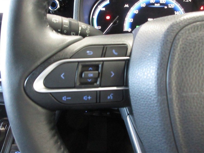 手にしっくり馴染む本革巻きステアリング。ステアリングスイッチでオーディオなど各種調整ができます。