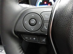 本革巻き+サテンメッキ加飾付3本スポークステアリング。ステアリングスイッチでオーディオの調節や各種切り替えができます。