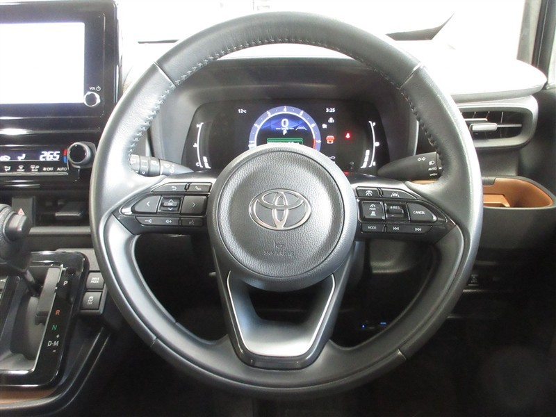 ステアリングは手触りの良い、本革巻き3本スポークステアリングです。(ステアリングスイッチ付)