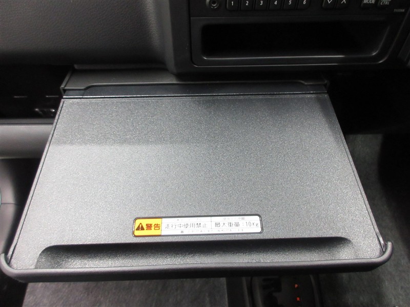 パソコンを置いたり、食事ができる引き出し式のテーブルです。ドライバーの意見が活かされたアイデアです。