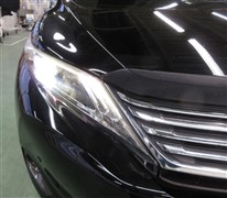 一列に配した3眼の輝きが精悍な印象を与えるオートレベリング付LEDランプです。