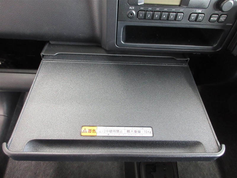 パソコンを置いたり、食事ができる引き出し式のテーブルです。ドライバーの意見が活かされたアイデアです。