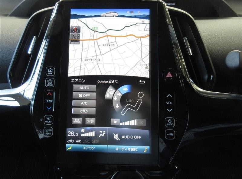大画面のセンターディスプレイが特徴のインストルメントパネル。プリウスが持つ先進的イメージを醸し出しています
