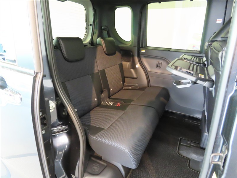 軽自動車なのにこの室内の広さは素敵ですね、後席の乗り降り楽な電動スライドドアです。