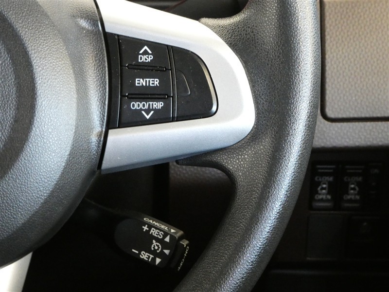 クルーズコントロールスイッチです。アクセルペダルを踏まずに定速走行できるので、高速道路などでの長時間運転の負荷軽減に寄与します。無駄なアクセルの踏み込みも抑えられエコドライブにも貢献しますね。