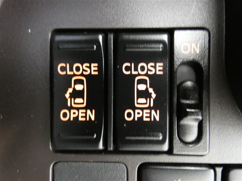 両側電動スライドドアです。操作はワイヤレスキー、室内のコントロールスイッチ、ドアハンドルでおこなえます。