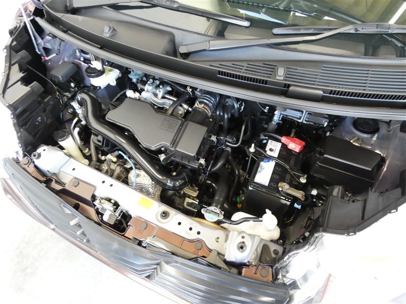 1000㏄のガソリンエンジンです。エンジンルームはボンネット裏からヒンジの奥まで油汚れを除去しています。