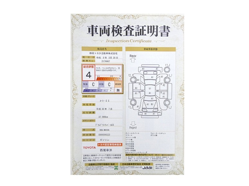 トヨタが認めた検査のプロが、すみずみまで車両をチェックした≪車両検査証明証≫が発行されています。おクルマの状態がわかりやすく安心ですよ♪