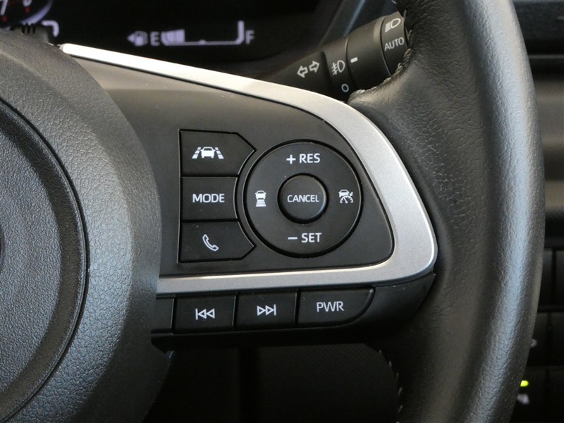 ステアリングスイッチ付きです。オーディオ、ディスプレイ、レーダークルーズコントロール操作時にハンドルから手を離すことなく操作可能で安全運転にも寄与した便利な装備です。
