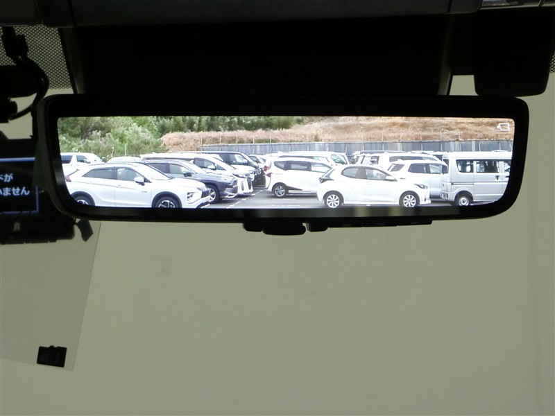 夜間でも明るく見えるデジタルミラー付きです。レバー操作で鏡面ミラーからデジタルミラーモードに切替可能です。
