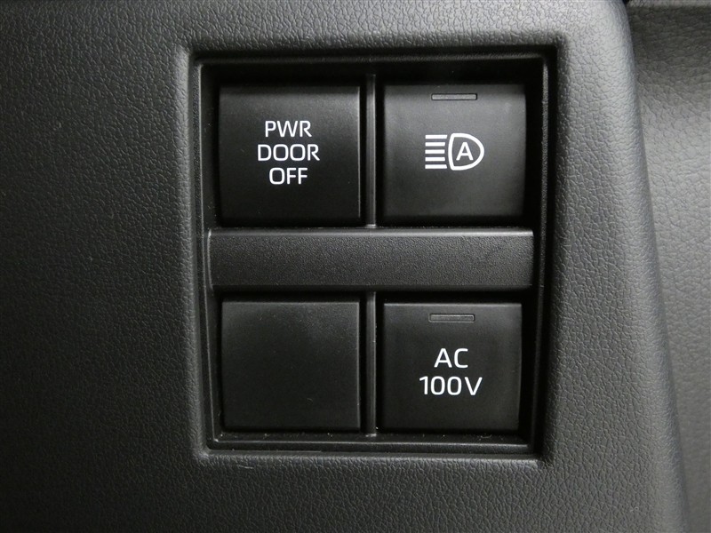 スイッチで簡単に開閉できるパワーバックドアスイッチと、両側スライドドアスイッチスイッチです。室内の開閉スイッチでゲストを向かえる際、さりげなくドア開閉スイッチをON。スマートですね!