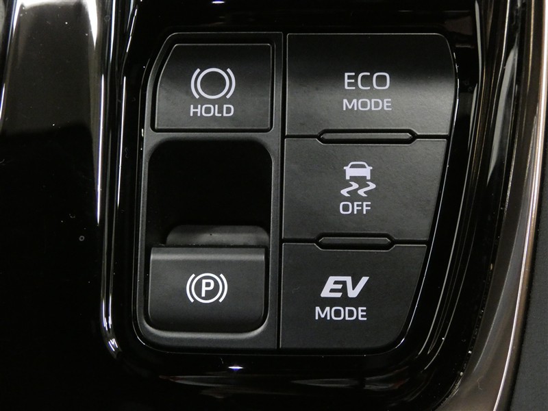 EVモード、エコモード付きです。エコモードに切り替えることで、燃費の向上をサポートしてくれます。また、EVモードではモーターだけで走行できますよ!