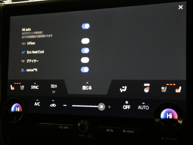 左右独立温度コントロールフルオートエアコンです。運転席・助手席それぞれ独立して温度設定が行えるので、助手席の大切な方も快適な室温でおくつろぎいただけます。