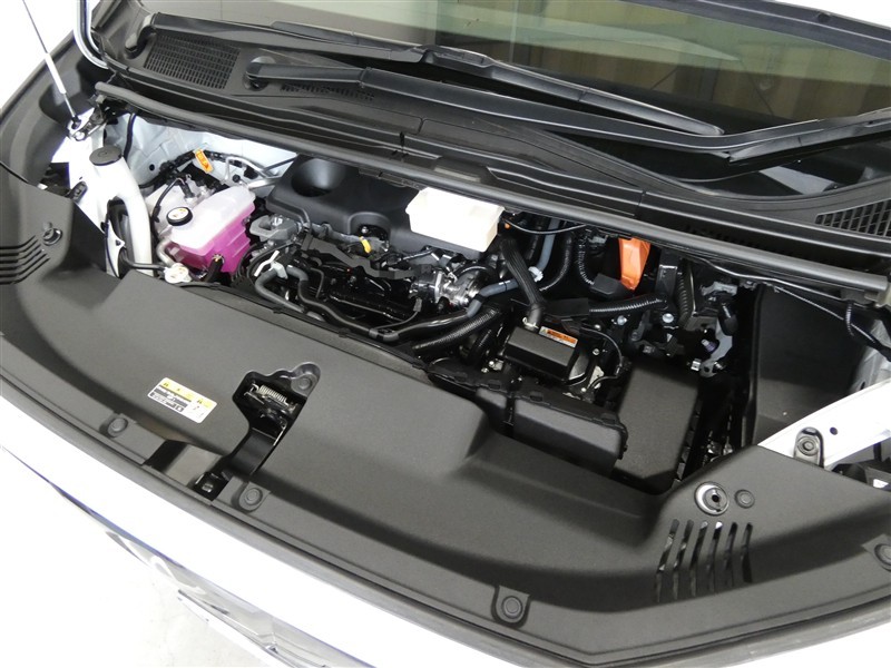 2500㏄のガソリンハイブリッドエンジンです。エンジンルームはボンネット裏からヒンジの奥まで油汚れを除去しています。