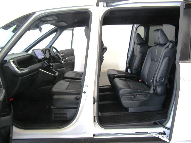 両側のスライドドアが電動で開閉します。操作はワイヤレスキー、室内のコントロールスイッチ、ドアハンドルでおこなえます。お子様・お年寄りの方も楽に開閉でき、狭い道でも安心ですね!