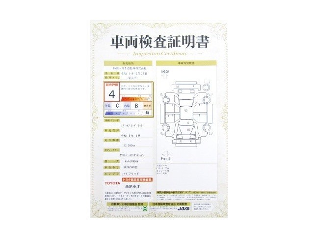 トヨタが認めた検査のプロが、すみずみまで車両をチェックした≪車両検査証明証≫が発行されています。おクルマの状態がわかりやすく安心ですよ♪