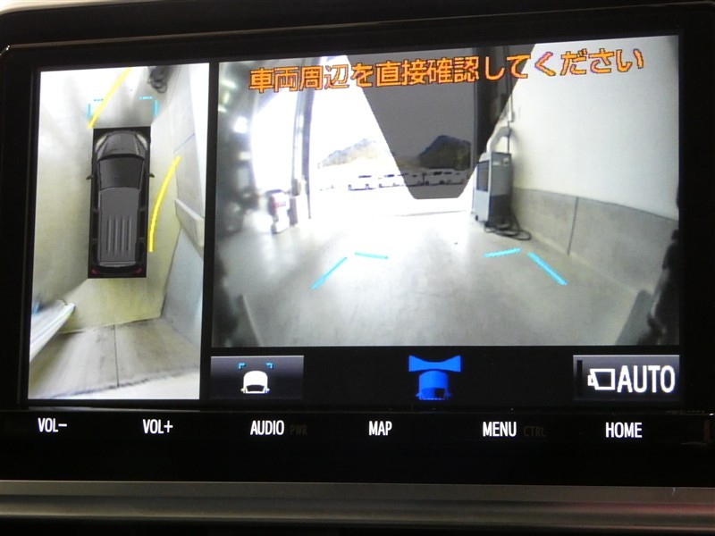 ハンドル操作に連動してガイドラインが変化するバックガイドライン付きのバックモニター+パノラマビューモニター付きです。車庫入れや縦列駐車をサポートします。