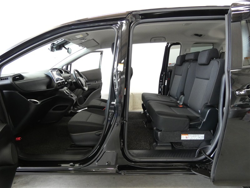 両側電動スライドドアです。操作はワイヤレスキー、室内のコントロールスイッチ、ドアハンドルでおこなえます。