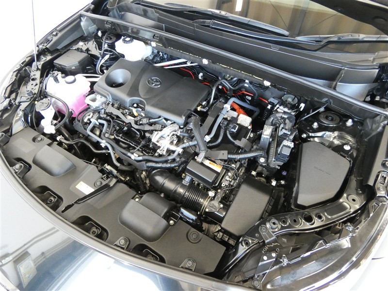 2500㏄のガソリンハイブリッドエンジンです。エンジンルームはボンネット裏からヒンジの奥まで油汚れを除去しています。
