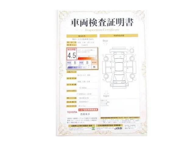 トヨタが認めた検査のプロが、すみずみまで車両をチェックした≪車両検査証明証≫が発行されています。おクルマの状態がわかりやすく安心ですよ♪