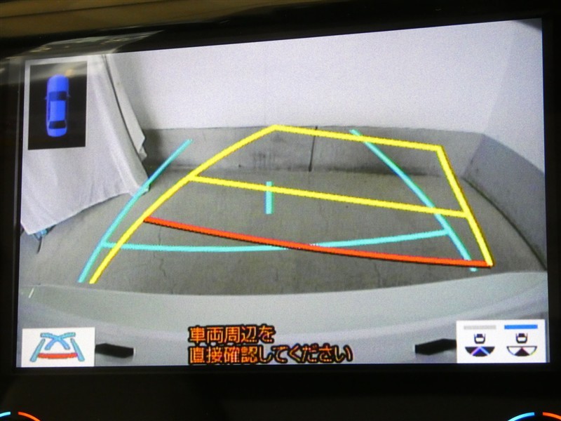 ハンドル操作に連動してガイドラインが変化するバックガイドライン付きのバックモニターです。車庫入れや縦列駐車をサポートします。