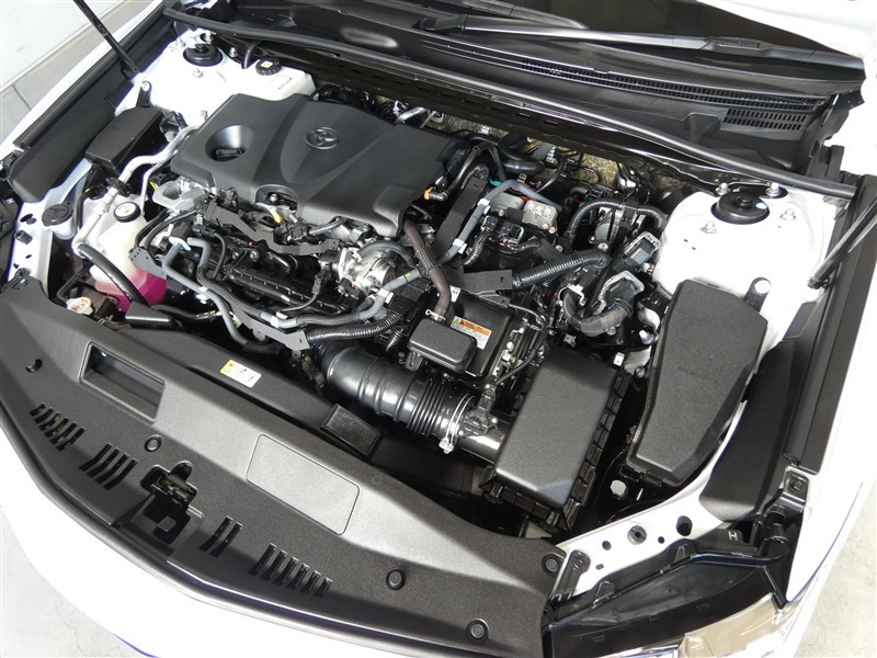 2500㏄のガソリンハイブリッドエンジンです。エンジンルームはボンネット裏からヒンジの奥まで油汚れを除去しています。