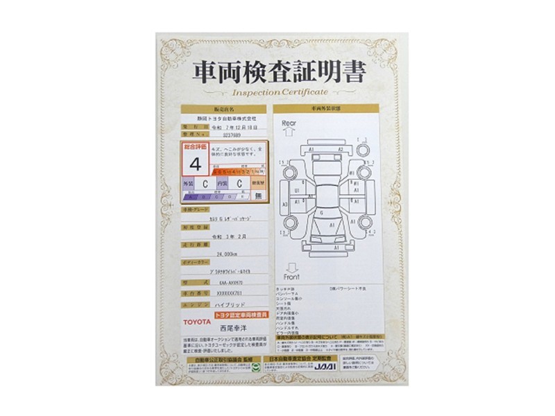 トヨタが認めた検査のプロが、すみずみまで車両をチェックした≪車両検査証明証≫が発行されています。おクルマの状態がわかりやすく安心ですよ♪