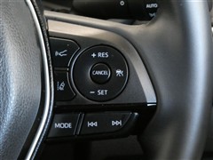 レーダークルーズコントロールスイッチです。高感度なミリ波レーダーセンサーの情報により、先行車を認識しています。先行車の車速が変化しても、設定車速内で車速に応じた適切な車間距離を保ちながら追従走行します
