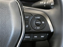 レーダークルーズコントロールスイッチです。高感度なミリ波レーダーセンサーの情報により、先行車を認識しています。先行車の車速が変化しても、設定車速内で車速に応じた適切な車間距離を保ちながら追従走行します