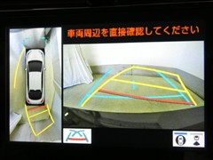 ハンドル操作に連動してガイドラインが変化するバックガイドライン付きのバックモニター+パノラマビューモニターです。車庫入れや縦列駐車をサポートします。