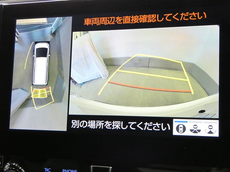 ハンドル操作に連動してガイドラインが変化するバックガイドライン付きのバックモニター+パノラマビューモニター付きです。車庫入れや縦列駐車をサポートします。