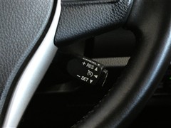 クルーズコントロールスイッチです。アクセルペダルを踏まずに定速走行できるので、高速道路などでの長時間運転の負荷軽減に寄与します。無駄なアクセルの踏み込みも抑えられエコドライブにも貢献しますね。