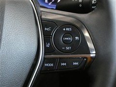 レーダークルーズコントロールスイッチです。高感度なミリ波レーダーセンサーの情報により、先行車を認識しています。先行車の車速が変化しても、設定車速内で車速に応じた適切な車間距離を保ちながら追従走行します