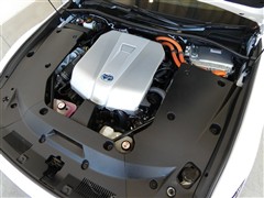 3500㏄のガソリンハイブリッドエンジンです。エンジンルームはボンネット裏からヒンジの奥まで油汚れを除去しています。