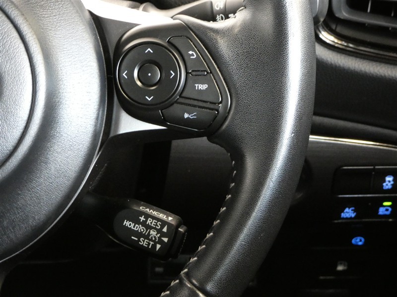 ステアリングスイッチ付きです。オーディオ、ディスプレイ、レーダークルーズコントロール操作時にハンドルから手を離すことなく操作可能で安全運転にも寄与した便利な装備です。