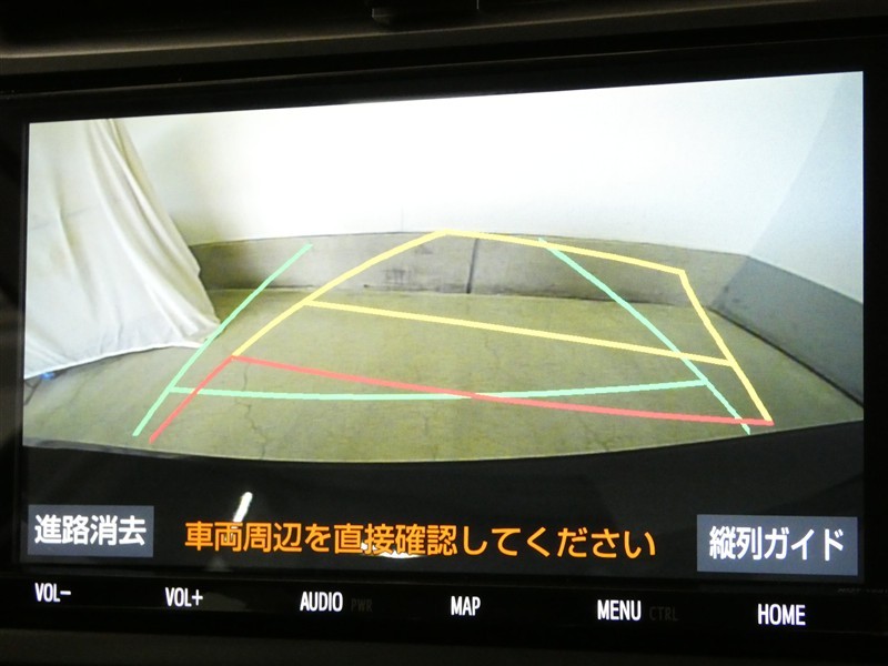 ハンドル操作に連動してガイドラインが変化するバックガイドライン付きのバックモニターです。車庫入れや縦列駐車をサポートします。