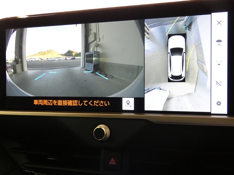 ハンドル操作に連動してガイドラインが変化するバックガイドライン付きのバックモニター+パノラマビューモニター付きです。車庫入れや縦列駐車をサポートします。