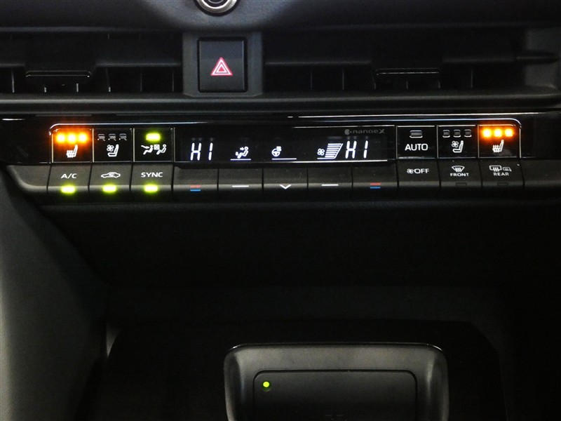 左右独立温度コントロールフルオートエアコンです。運転席・助手席それぞれ独立して温度設定が行え、フロントシートはシートヒーターとシートベンチレーション装備です。