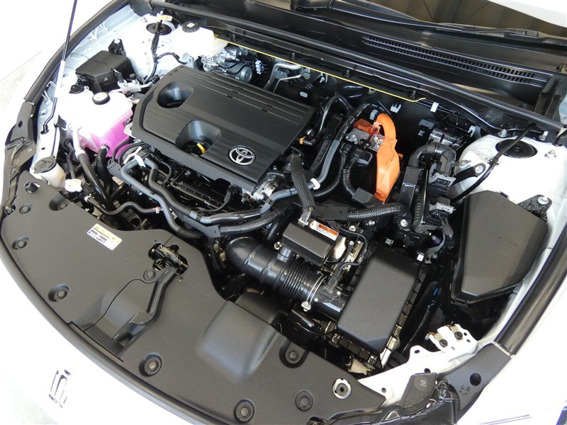 2500㏄のガソリンハイブリッドエンジンです。エンジンルームはボンネット裏からヒンジの奥まで油汚れを除去しています。