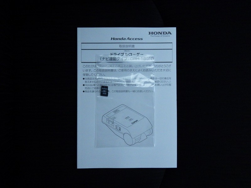 ドライブレコーダーの取扱い説明書付きです。