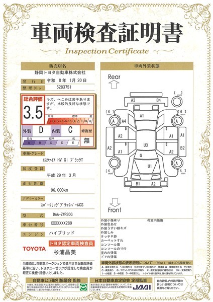 車両検査証明書付きです。おクルマの状態がわかりやすく安心ですよ♪